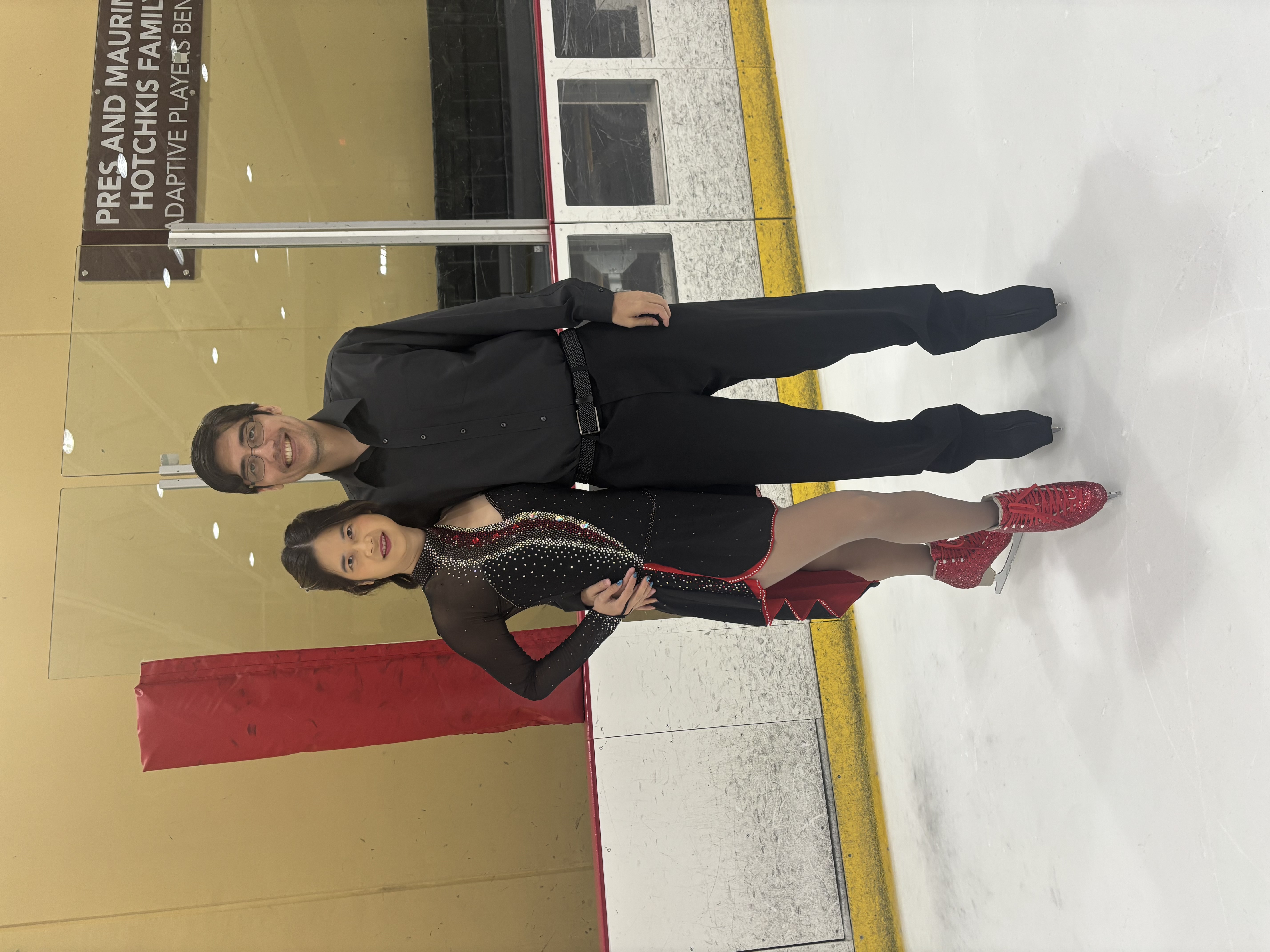 I enjoy doing cross rolls, learning deeper edge pulls and I’d love to learn twizzles! I also enjoy learning ice dance with Stephanie.